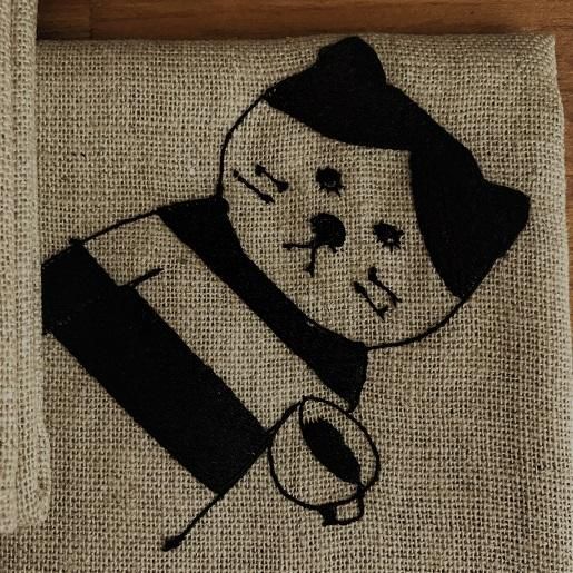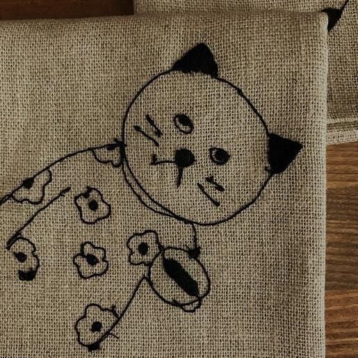 ちょっと不機嫌そうにも見える猫たちが愛らしいリネンのお弁当バッグ