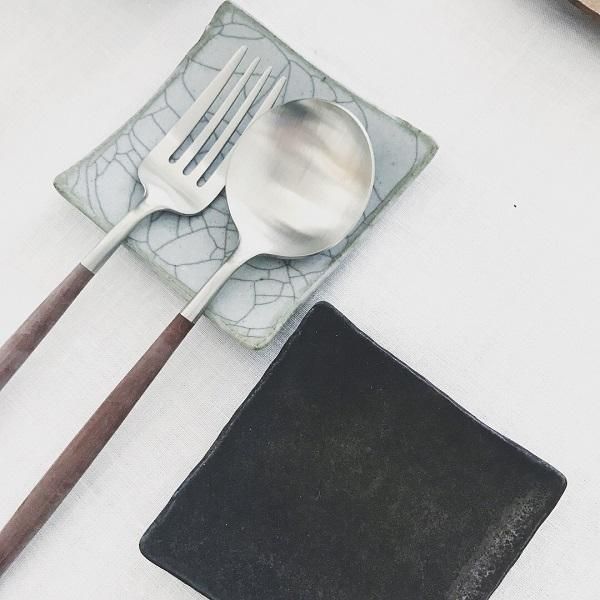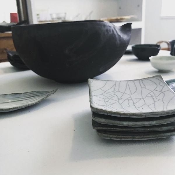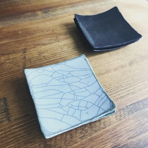 きゅっと角のそった炭入りの小皿