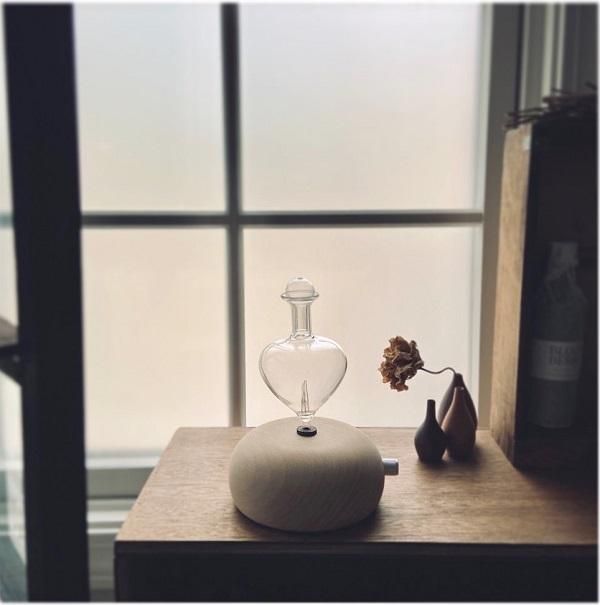 拡散の機能は木製のベース(台座)に内蔵された小型ポンプ(空気の噴霧)によって行われているので精油成分を変えることなく芳香します。