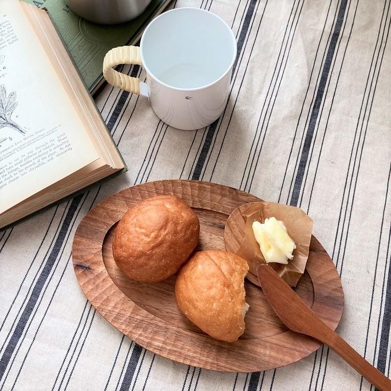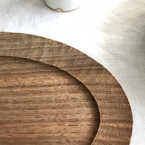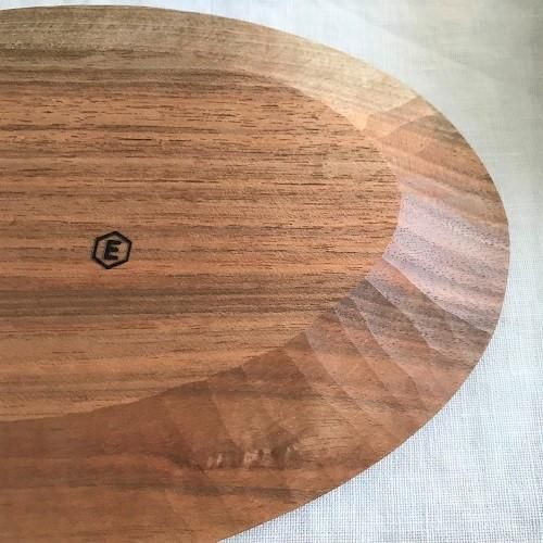 少しくすんだような、茶褐色のクルミを使ったリム付のオーバルパン皿