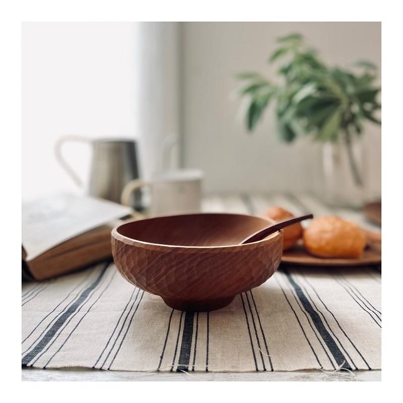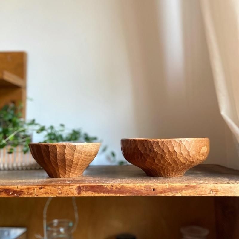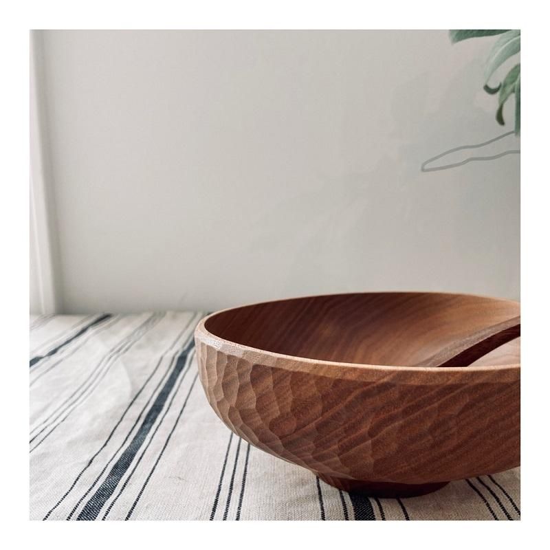 木目や色の濃淡と流れるような鑿跡がとてもきれいなボウル