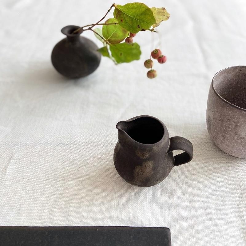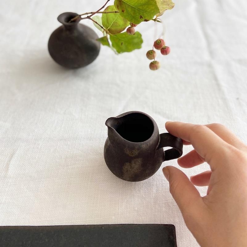 釉薬のムラが趣深く細かにキラキラと輝く黒釉のミルクピッチャー