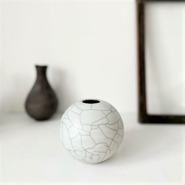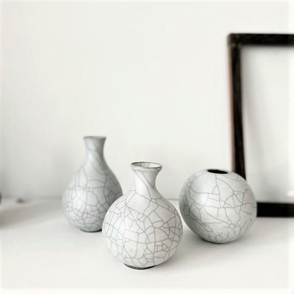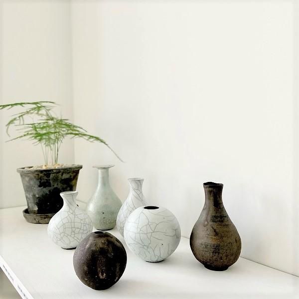 和にも洋にもあう、貫入に墨をしみこませた炭入りの花器