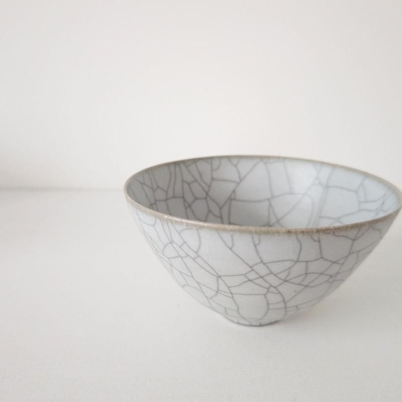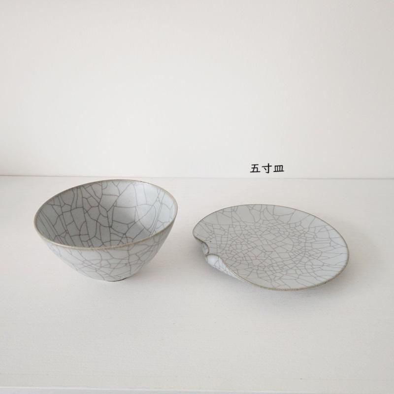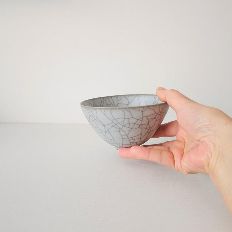 和にも洋にもあう、グレーの釉薬の貫入に墨をしみこませた器
