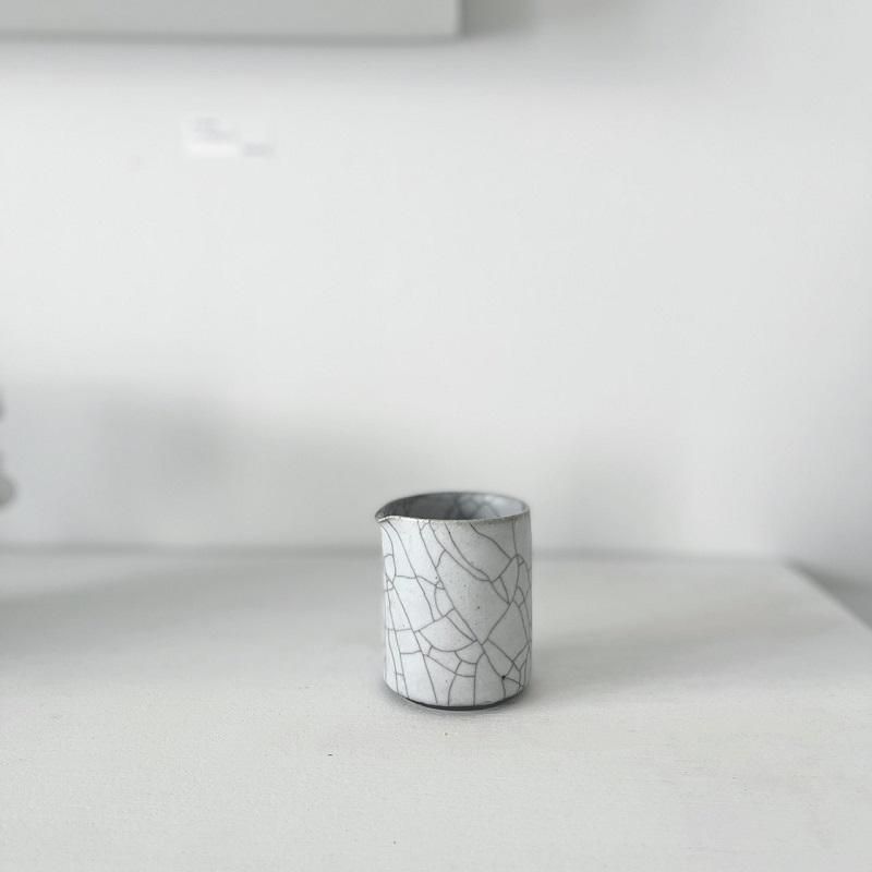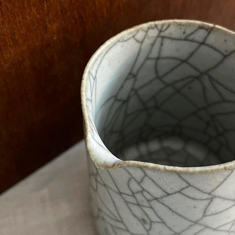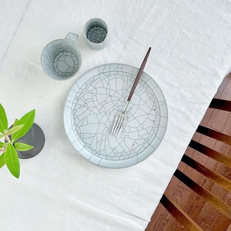 和にも洋にもあう、グレーの釉薬の貫入に炭をしみこませた器