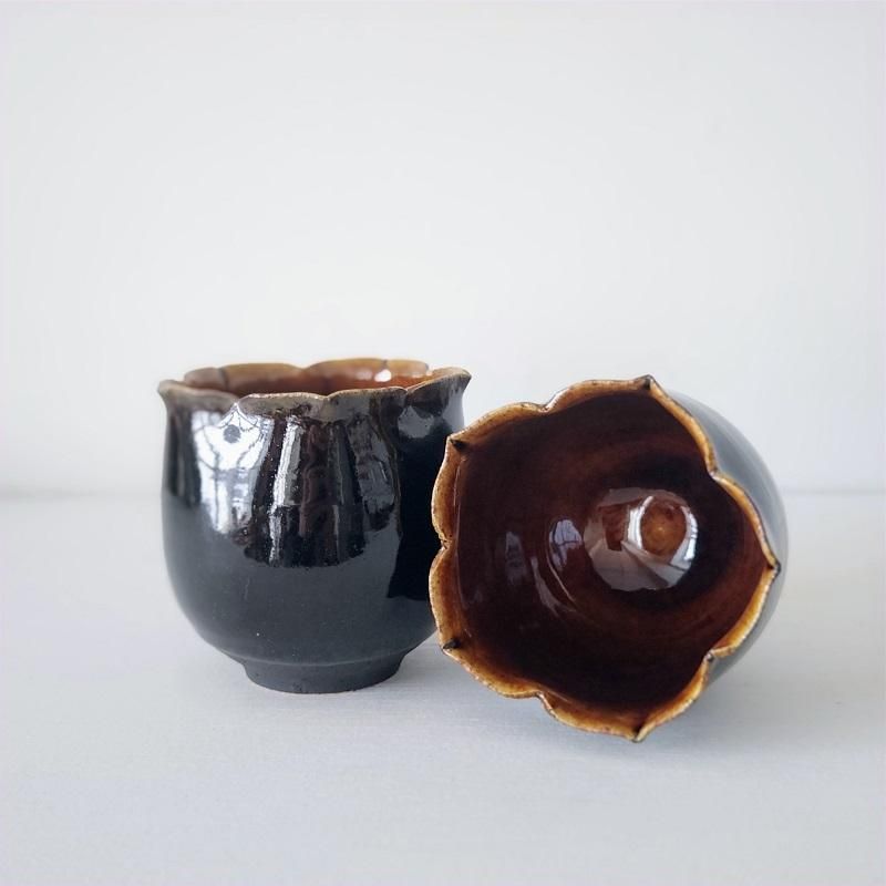 外側はツヤ感のある黒釉のシックで落ち着いた雰囲気の小鉢