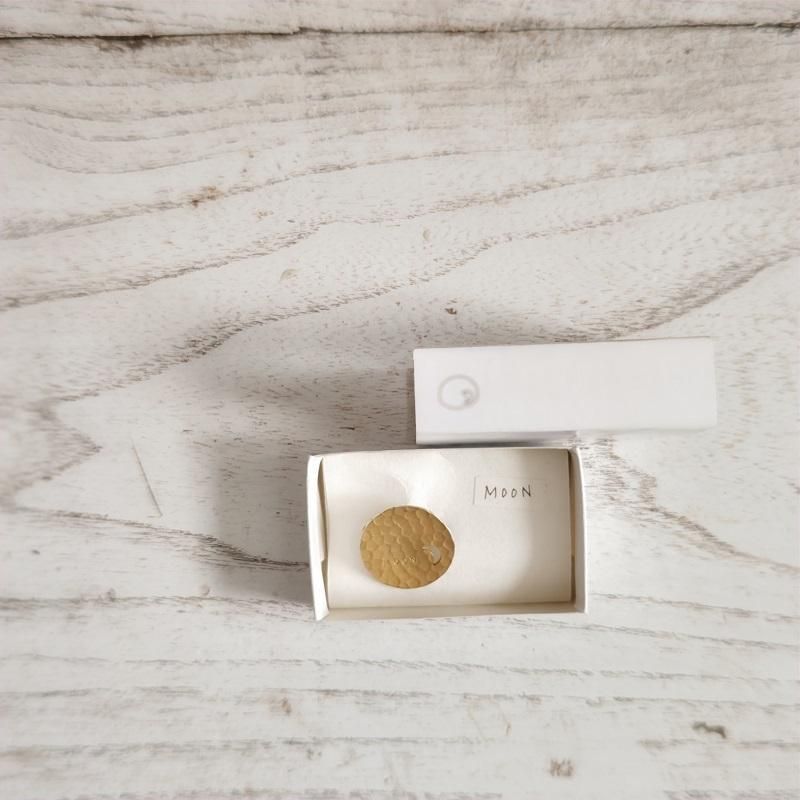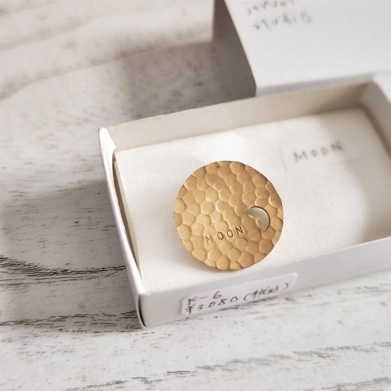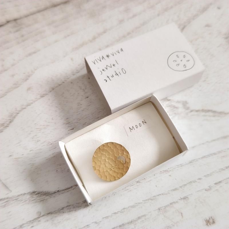 ボコボコの表面にちっちゃな三日月をすかしたMOONブローチ。