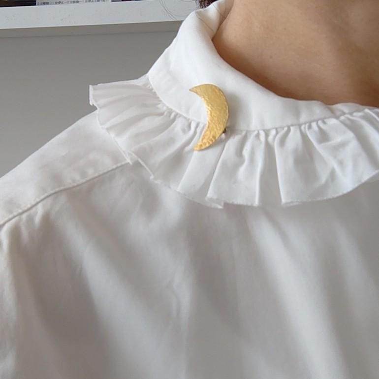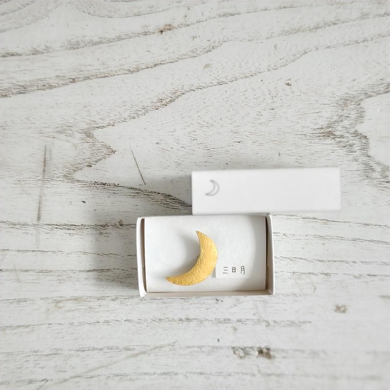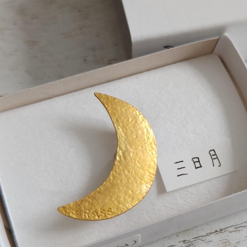 お月さんらしくボコボコの表面に仕上げた三日月ブローチ。