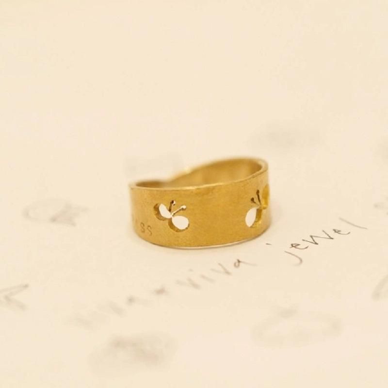 小さな蝶達がふわふわ飛び交うフリーサイズリング。