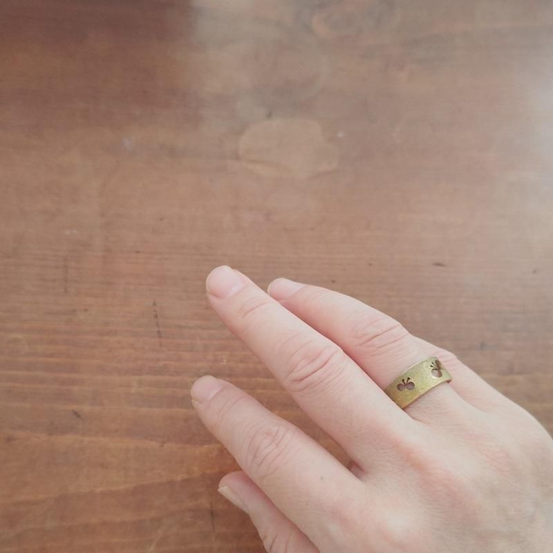 真鍮の性質上、汗ばむ季節には、リングをはめている指が黒くなることがございます。(体に害はございません。。)指の黒ずみは石鹸で洗い流せばきれいに落ちますが、この点をご了承いただいた上ご注文くださいませ。